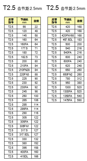 咨询:T2.5-PU梯形齿同步带-齿节距2.5mm