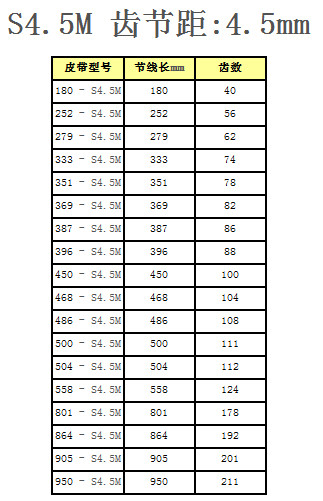 咨询:S4.5M-STD圆弧平顶齿同步带-齿节距4.5mm